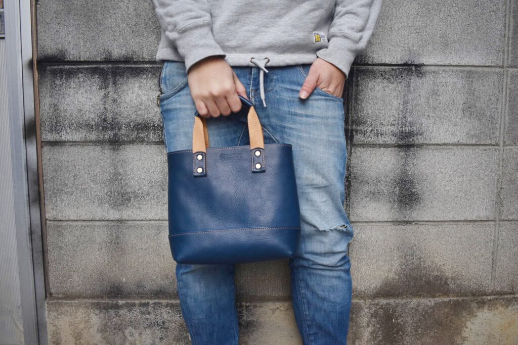 青のバッグに別革の青のパッチ