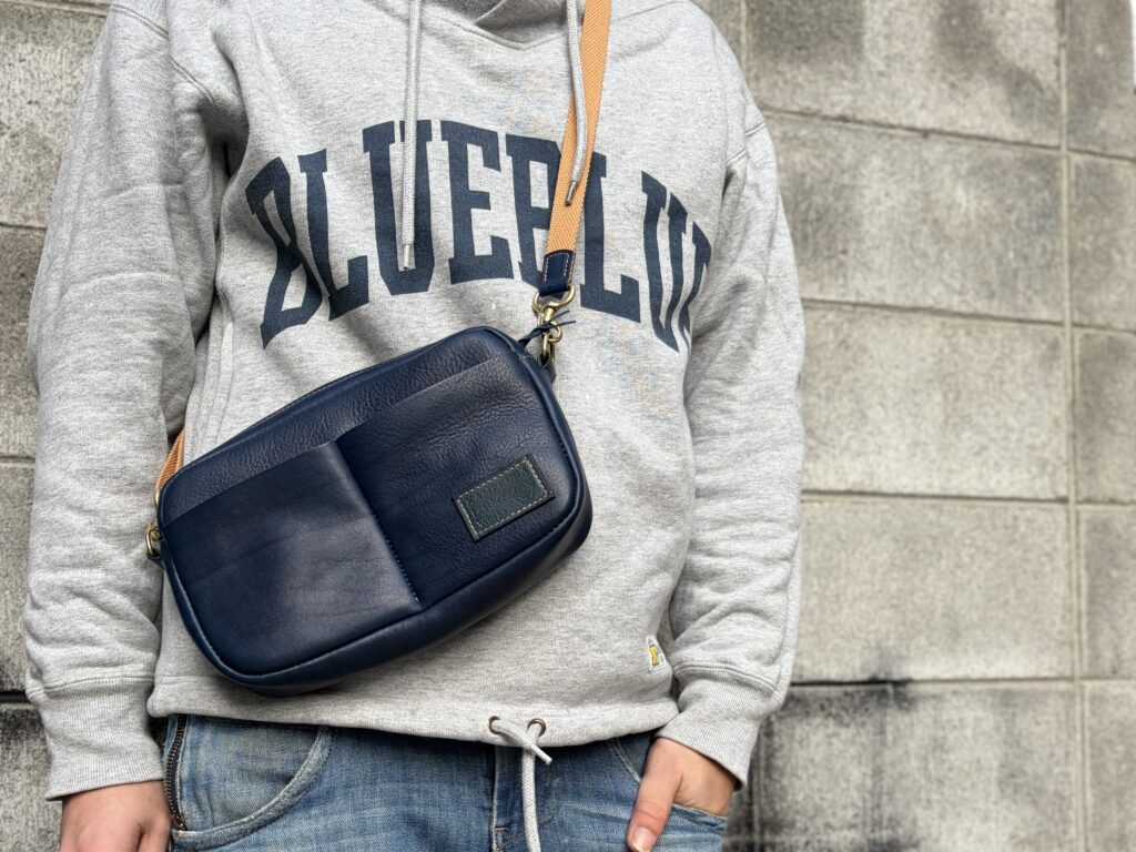 ショルダーもそうですが、青いバッグって合わせるの難しくない?